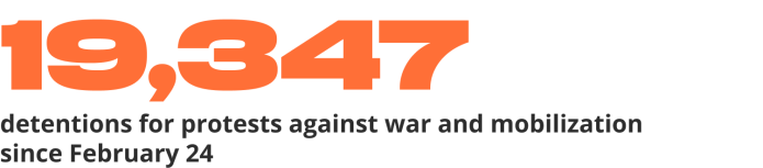We are aware of more than 19 thousand detentions in 226 cities in Russia and in the Crimea. In addition to detentions at anti-war rallies, we have information on 154 detentions for anti-war posts in social networks, 126 detentions for anti-war symbolics, and 229 detentions after anti-war protests. In the eight months, we know of just 18 days when the Russian police forces did not arrest anyone for their anti-war stance.